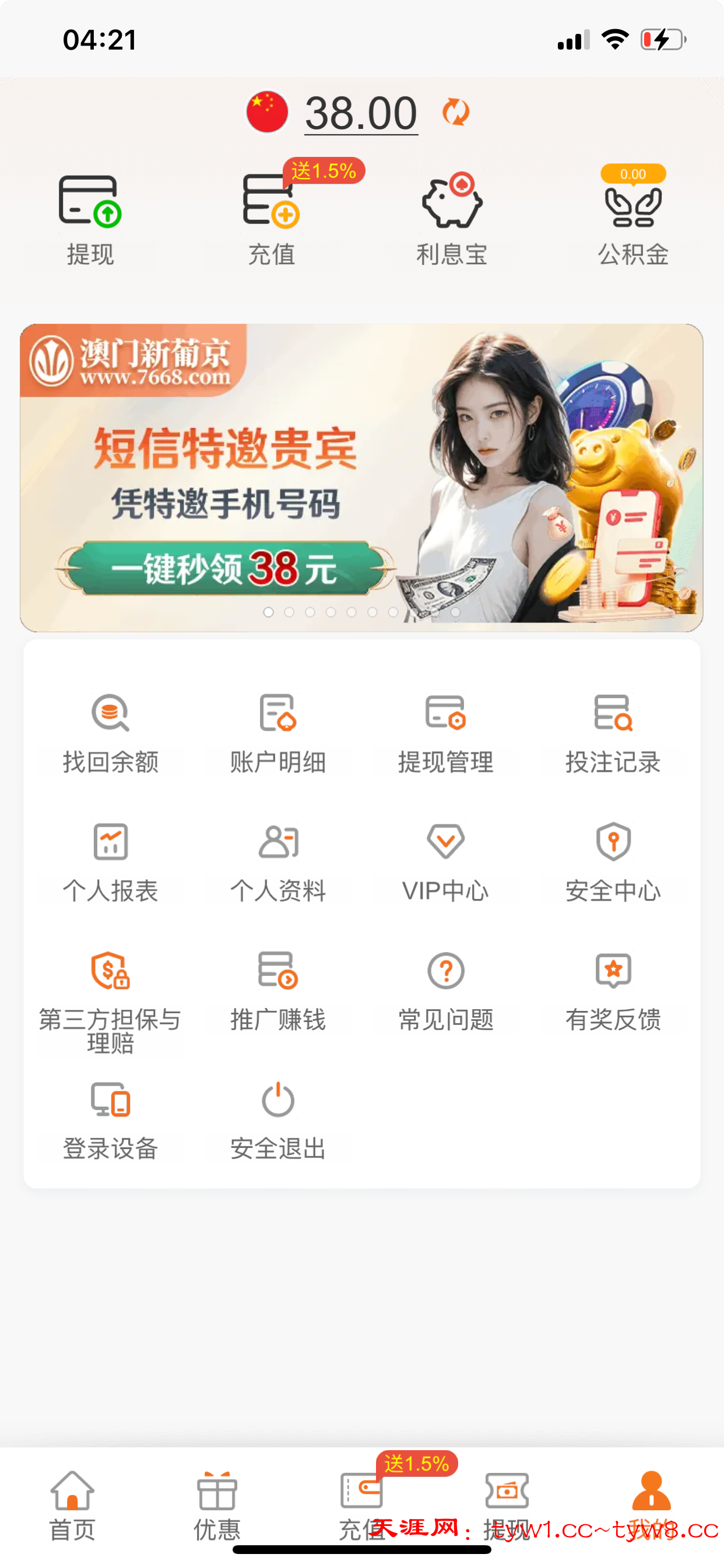没充过钱 领了38彩金 提1500 都给出