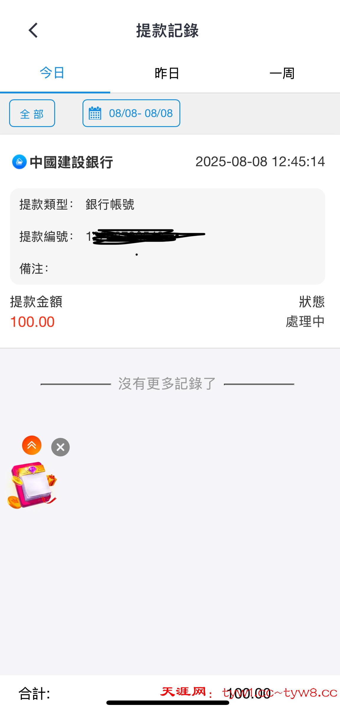 提了100不知道能到不