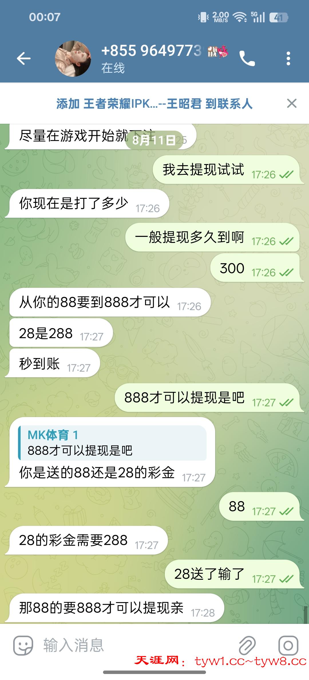 新人注册就送28,我领的3个号都没有打出来,什么都不查,直接联系飞机客服就送,规则是新人28,288可下,群里面有幸运评分,当天游戏评分和幸运评分一样可以领取88,888可下,下注后去打把王者就下,看自己战绩尾号单双