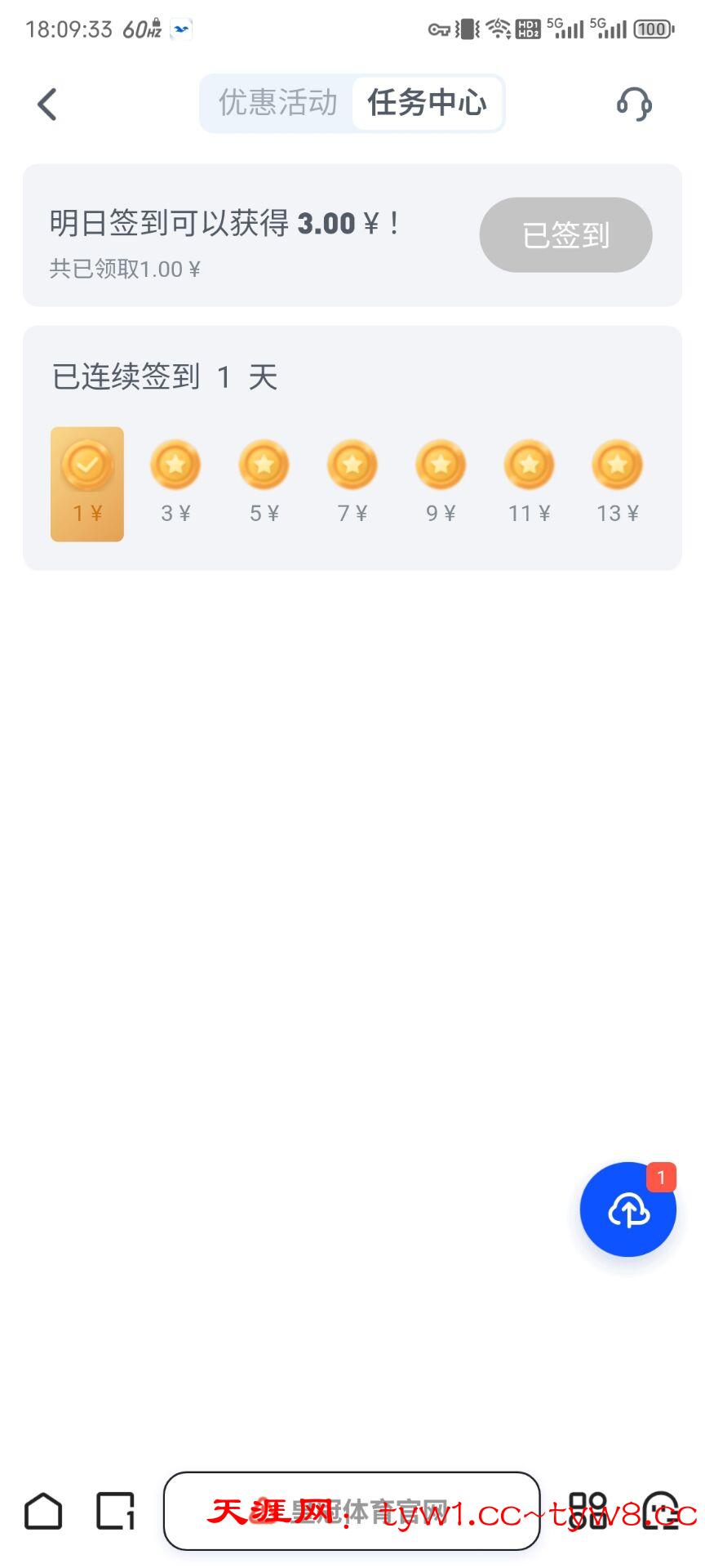 01151.com 赌神彩金 注册绑卡就可以签到,出款的话不清楚,可以签到7天。