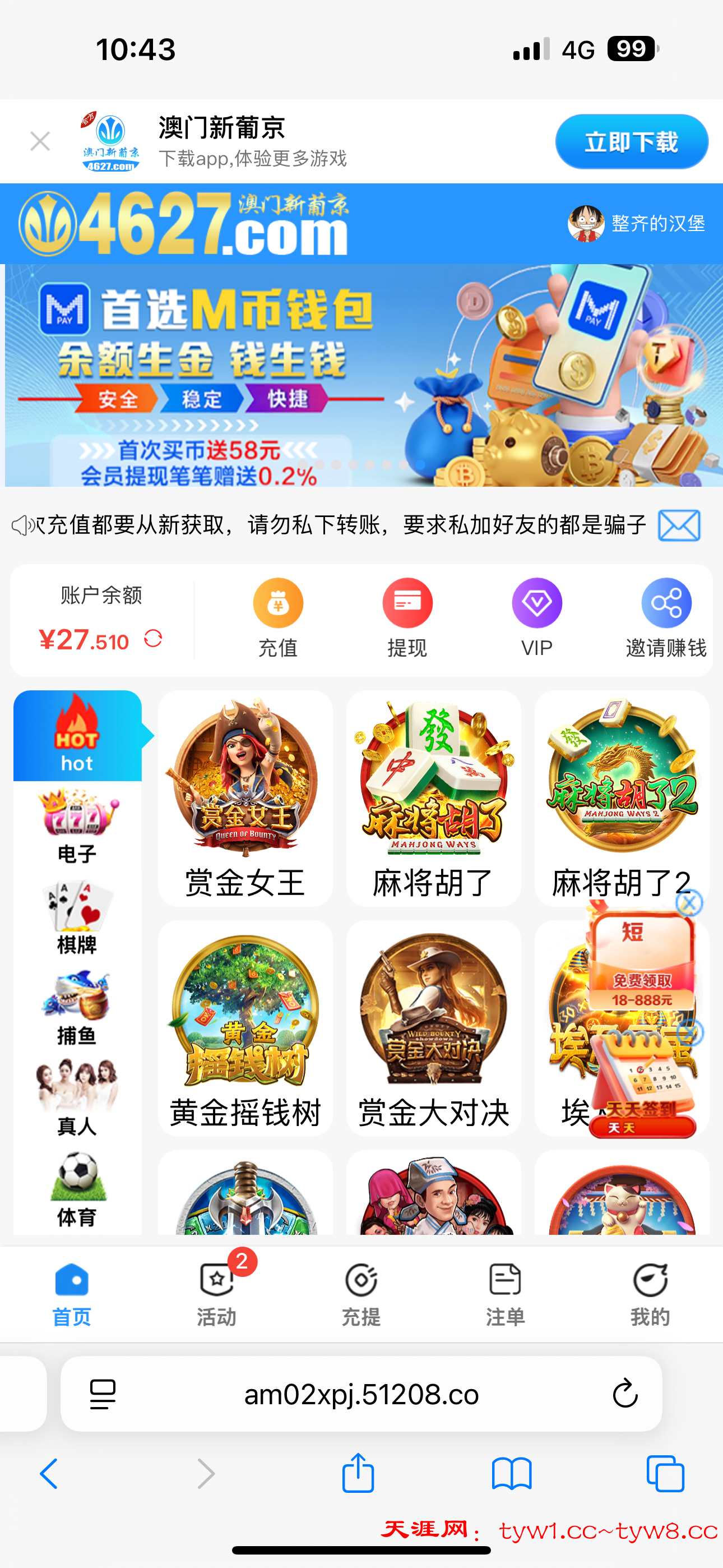 4627.com 之前领取过的老哥可以登录账号领取一下,我之前领取过了,然后现在又领取到了