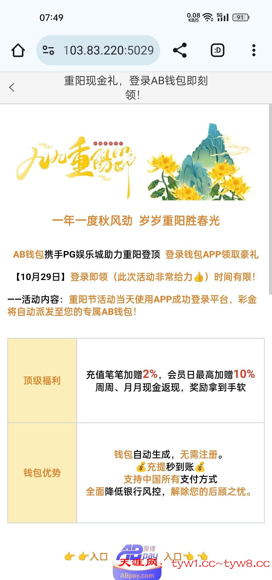 008.vip,008.com,3615.com,90.cc,5555.cc这几个台子都有重阳登录彩金,是直接派送到ab钱包里面