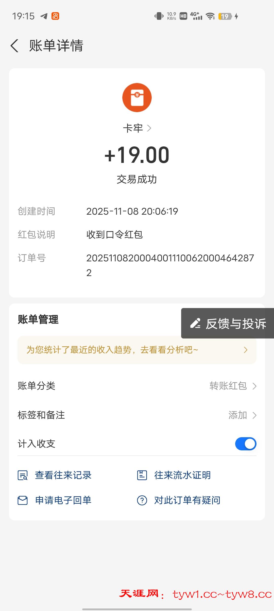 到账两包白沙+槟榔 感谢天涯