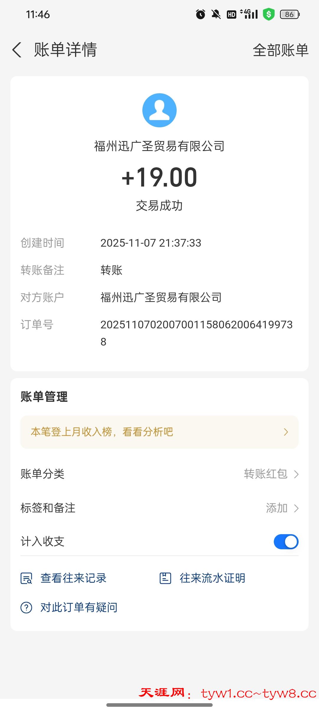 到账了