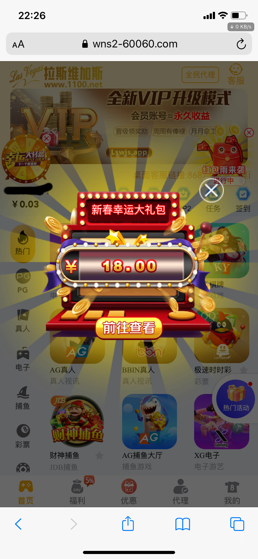 除夕送了一次,现在登陆又送,很久没充值了,有号登录去领。网址1100.net