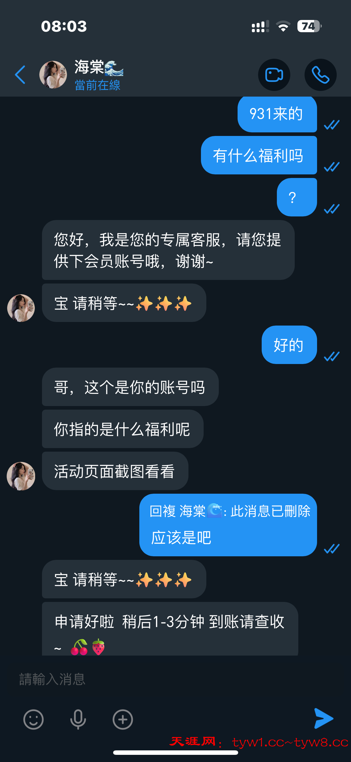 添加专属女神靓号:9898(海棠