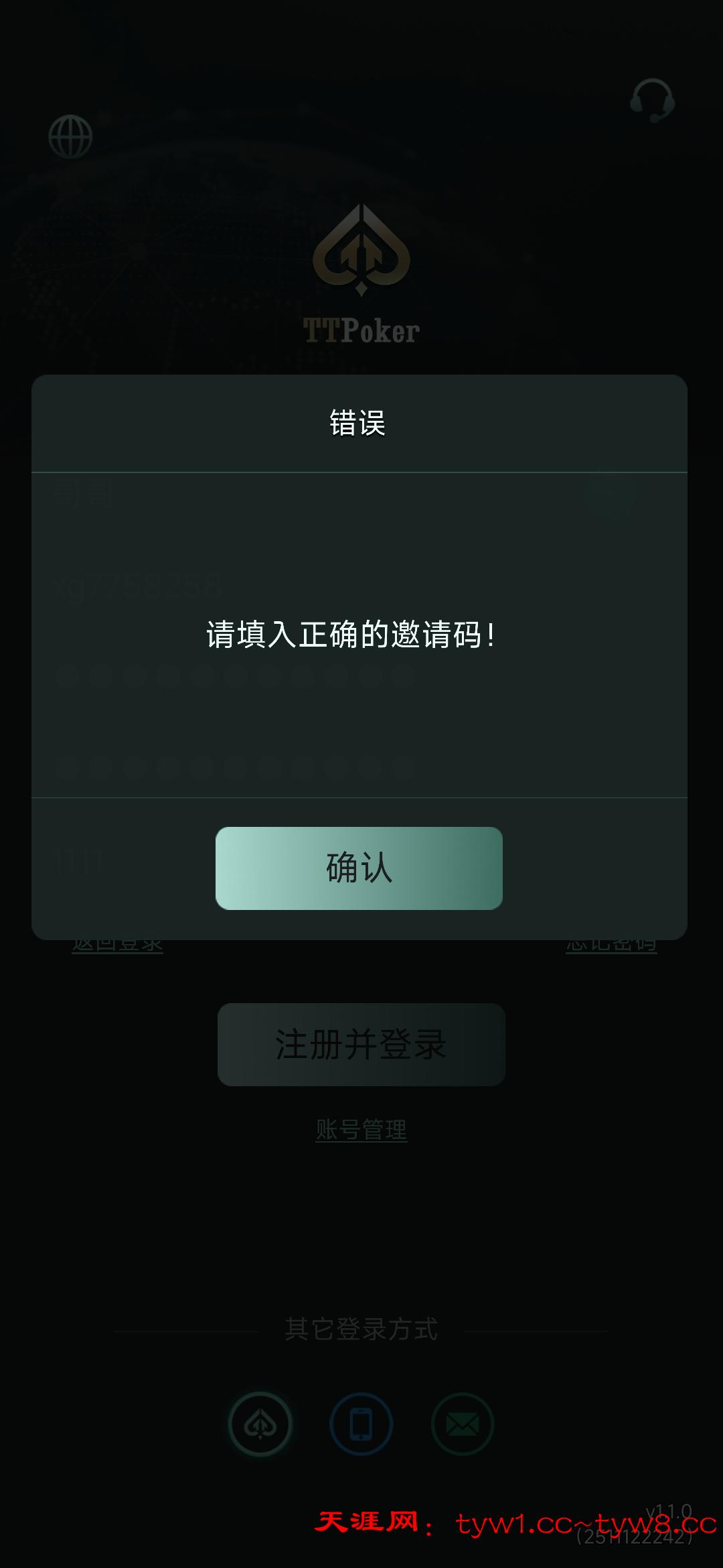 邀请码1111不对