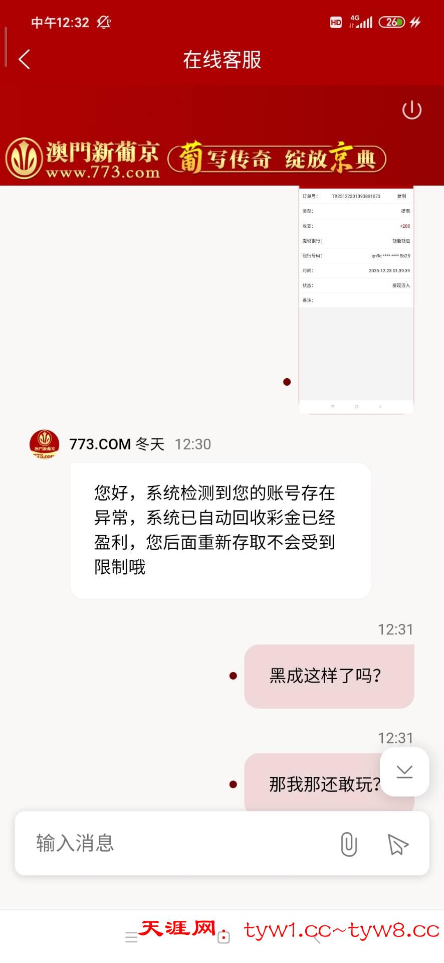 之前充值过几次没提过,昨天抢红包提个200,问客服说系统的问题,光明正大黑