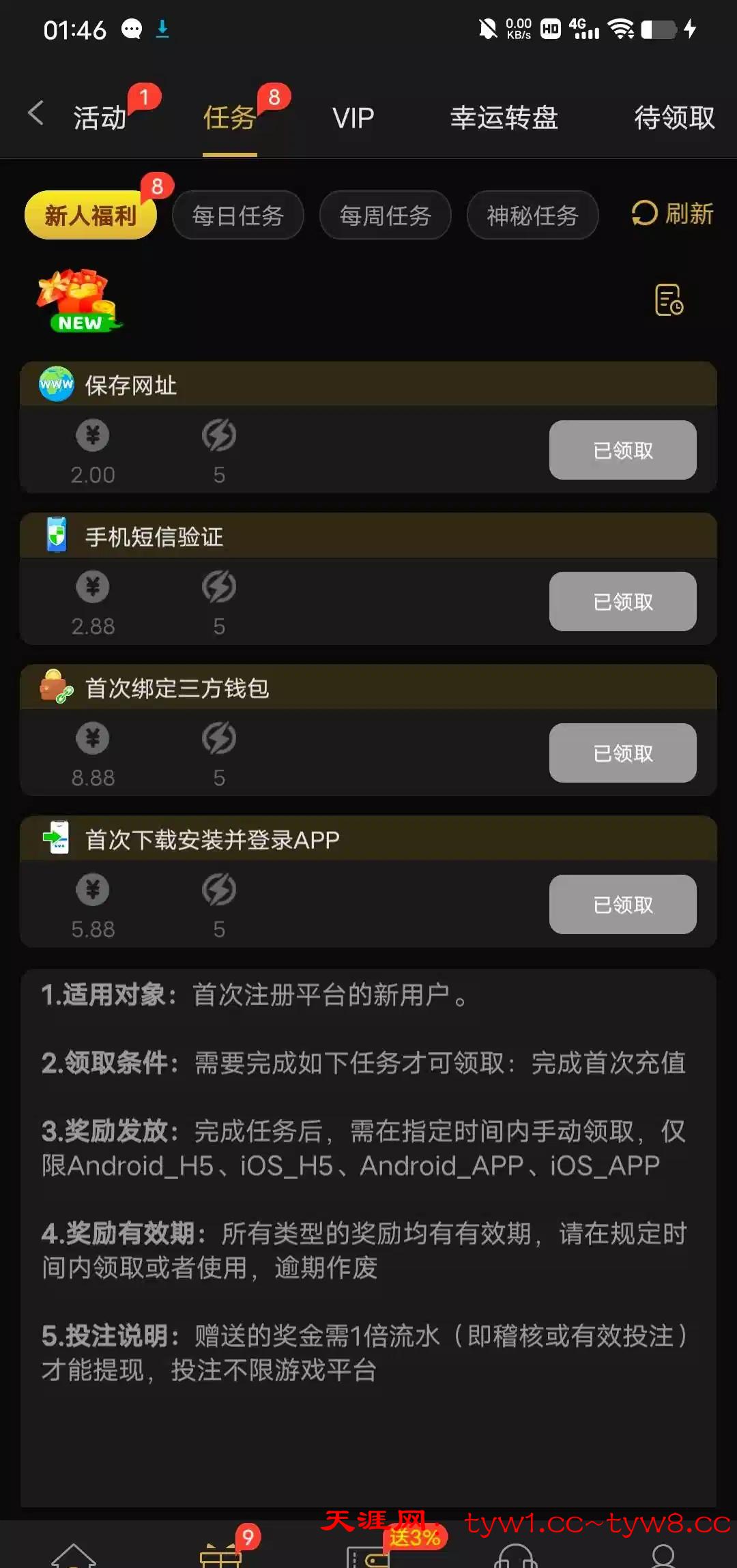 新葡京789下载app10+20任务彩金,暂时不黑任务彩金要第二天才能领取,自己看