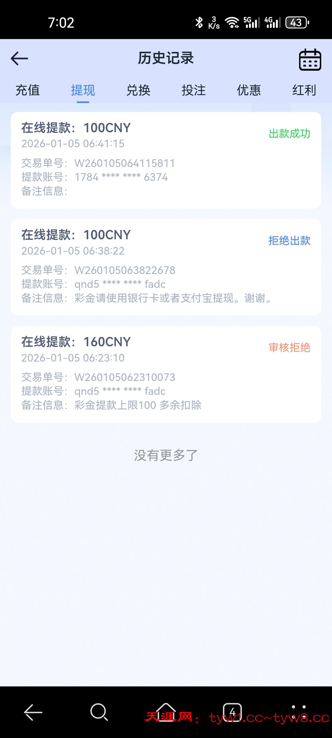 畜牲,彩金打400充了100试试能不能出,直接给我扣的剩个本,还打一水挂壁,啥也没吃上还亏一百,一点格局也没!