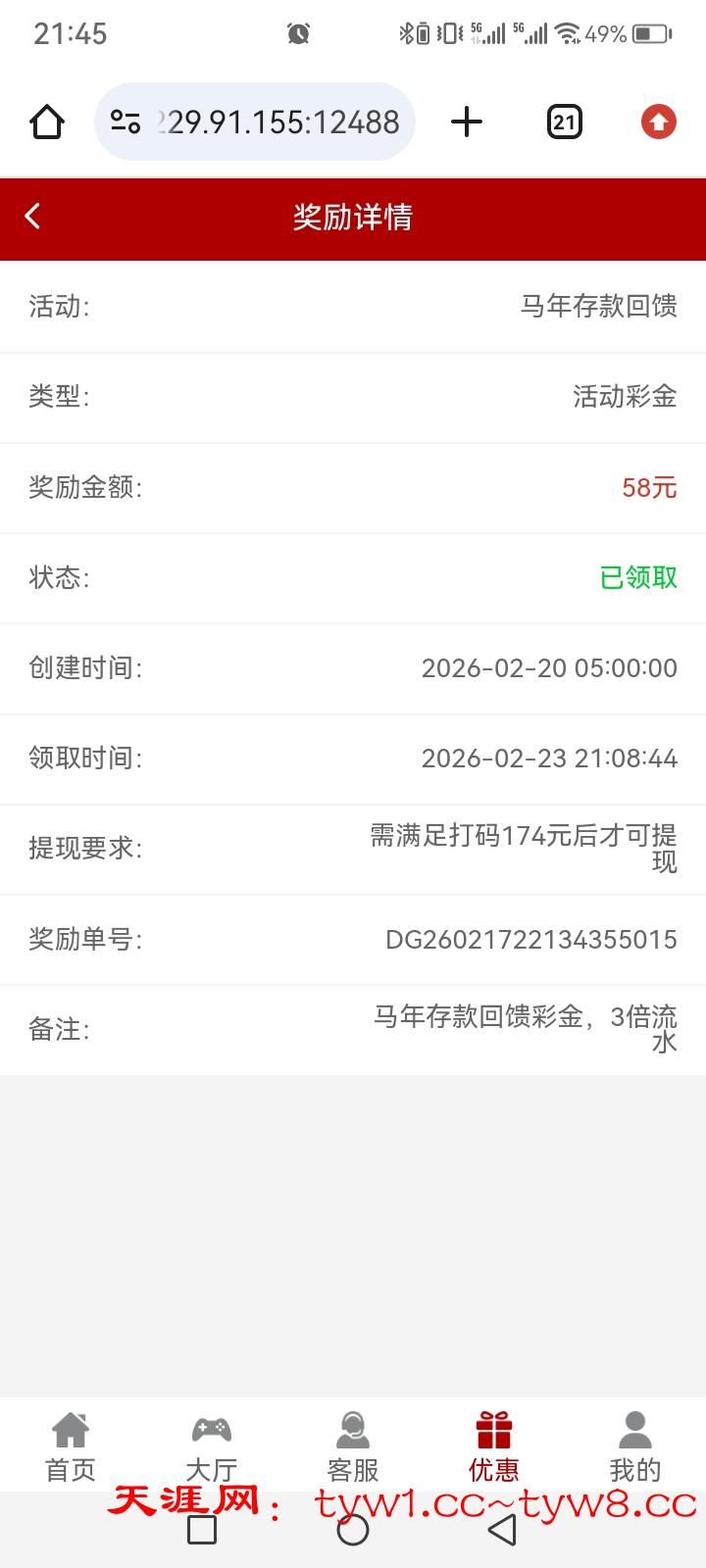 773.com 马年存款回馈彩金,半年多没充值过了,今天登录上去看到的,有号充值过的可以登录看看