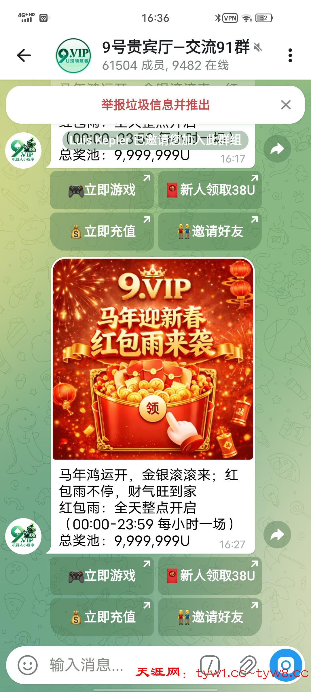 进去飞机群,点注册送38然后飞机找客服。我送了8u不是特邀,送8u要128u才可以提现,我没有出最高上85u。不嫌麻烦的可以试试。飞机群链接 https://t.me/dny8697