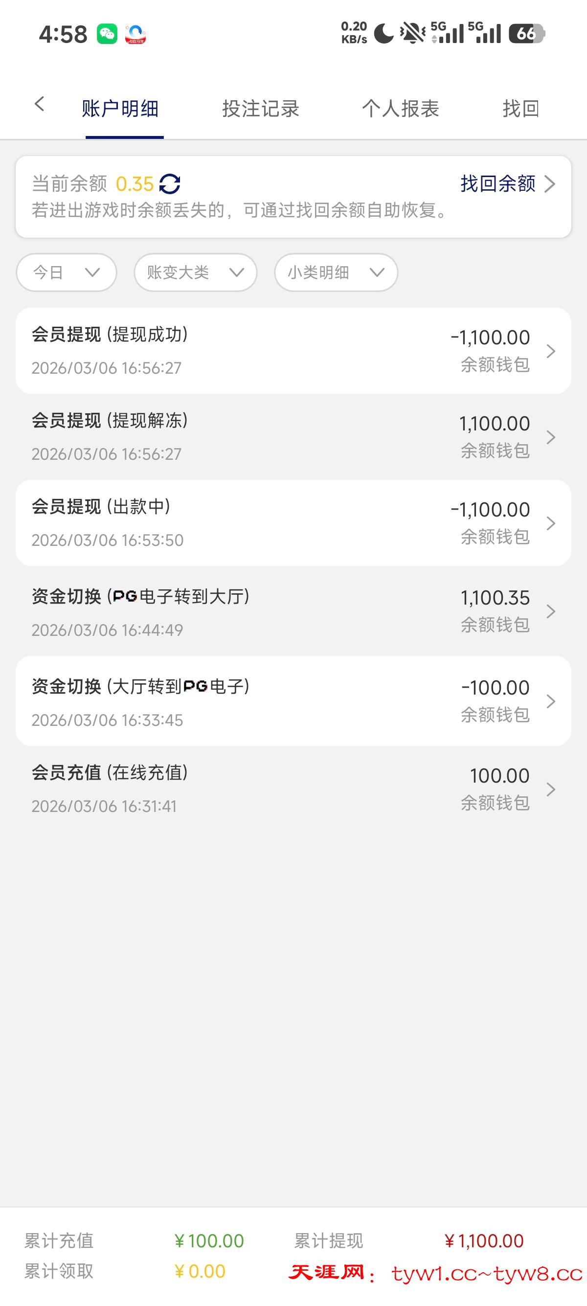 ctl123456 充值100准备申请1+1,觉得太慢了直接裸打,只玩了麻将1拉的3块钱,100下1100