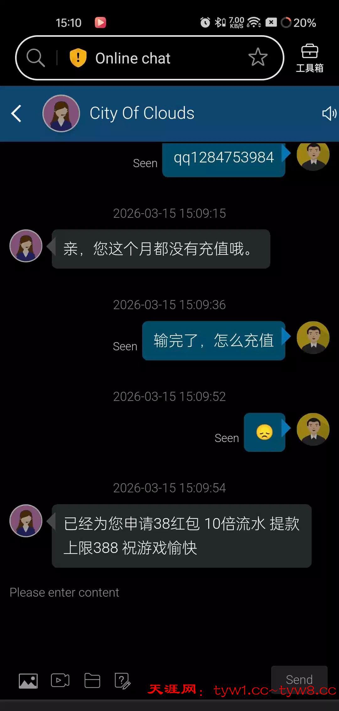 只要上个月有充值联系客服可以白嫖彩金基本都有 哭穷就好了 他们客服权限大的一比