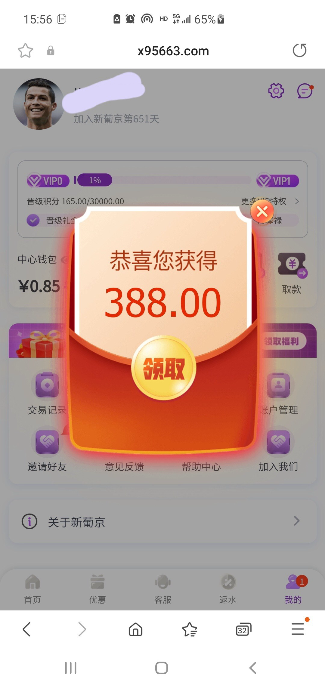 打电话来的注册了一年的账号没充过,送了388网址x95663.com