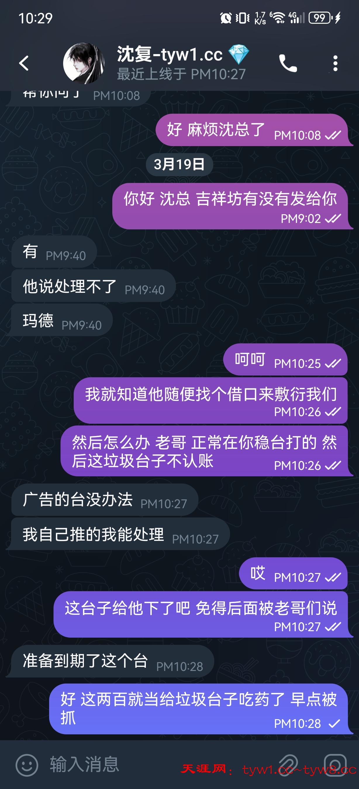 这个垃圾吉祥坊台子老哥们注意 让他出多id账号来看 也没有 然后直接说不受欢迎用户就这样敷衍了我跟沈总 等了一个星期 连200都不给 这有什么格局 还是感谢沈总 帮我一直问 狗庄不怎么敢回就敷衍 辛苦沈总 认准天涯网