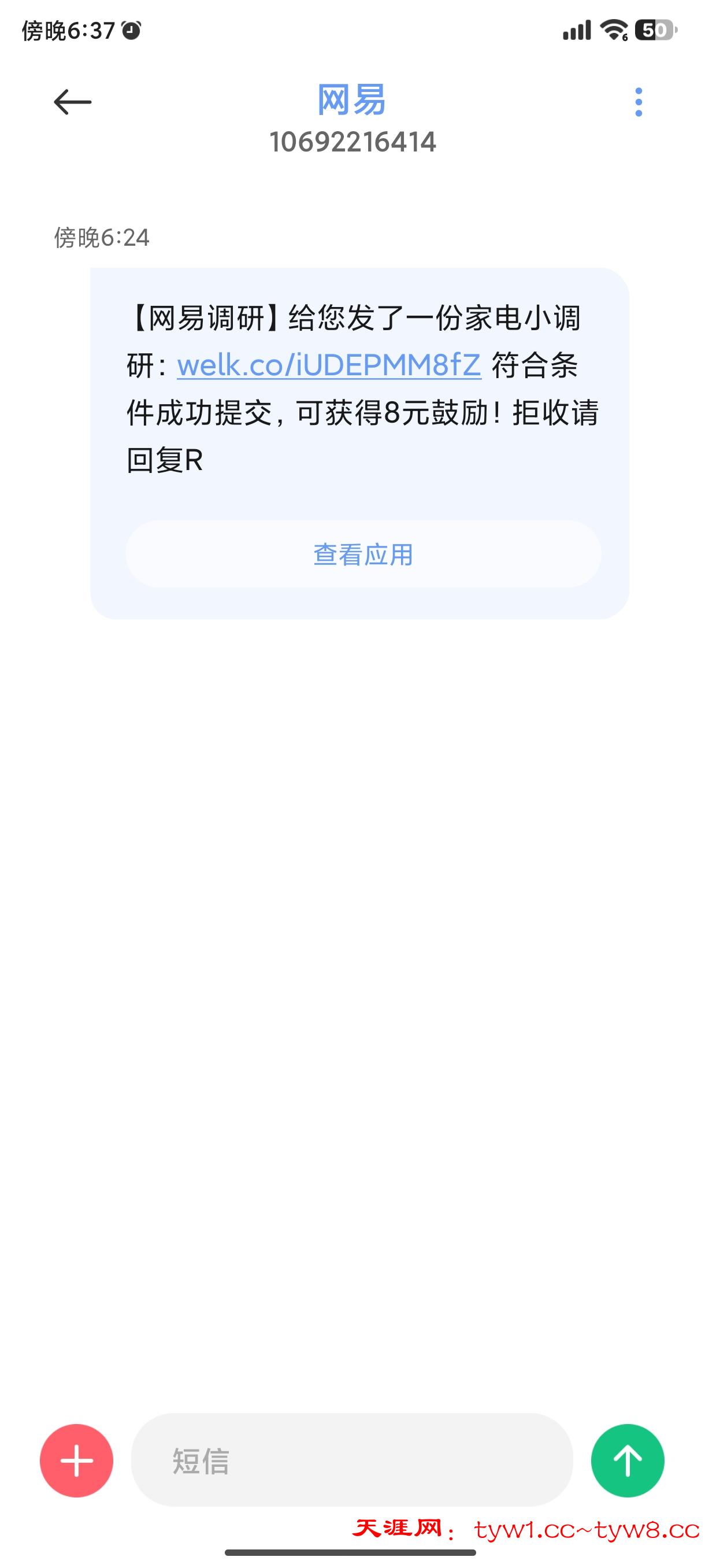 【网易调研】给您发了一份家电小调研:welk.co/iUDEPMM8fZ 符合条件成功提交,可获得8元鼓励!拒收请回复R