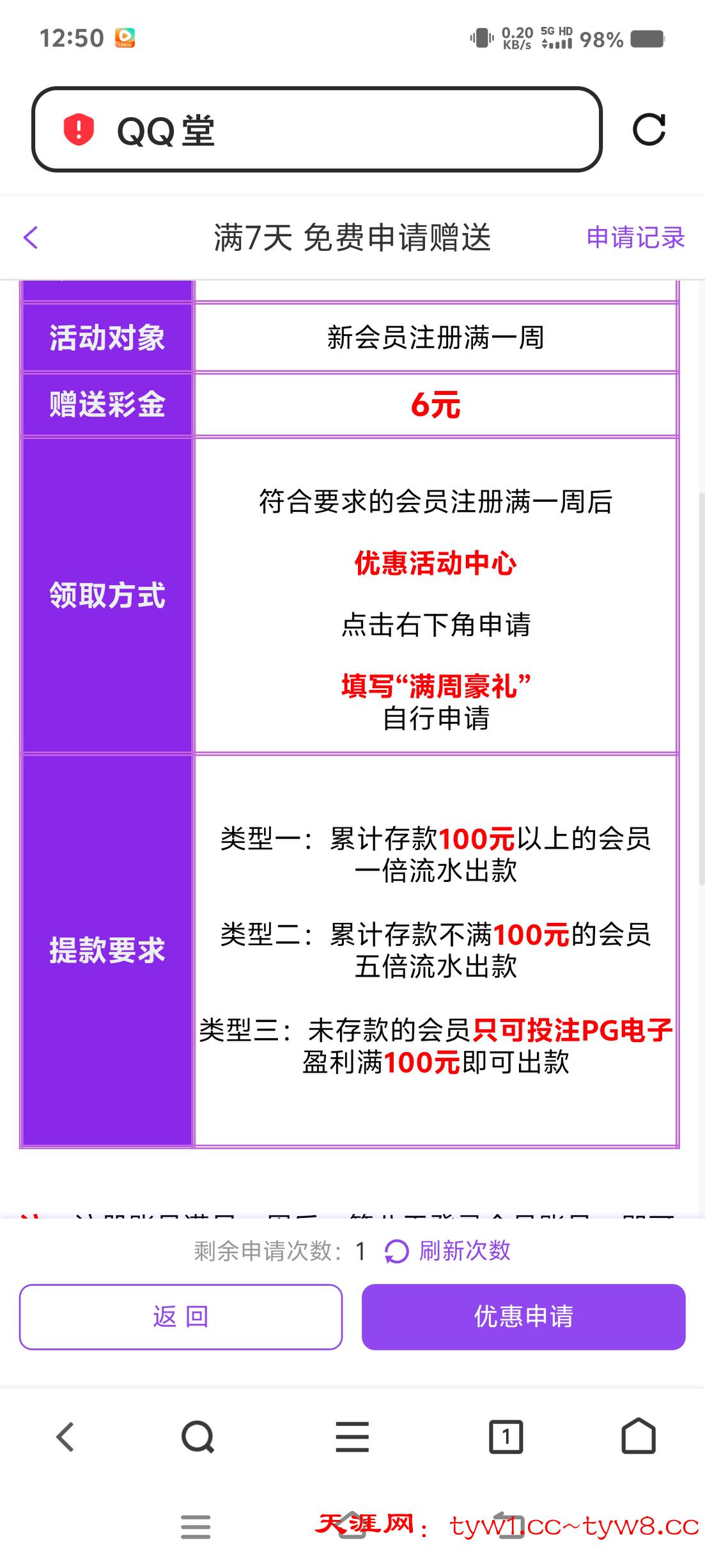 【QQ堂】注册第7天白嫖6元