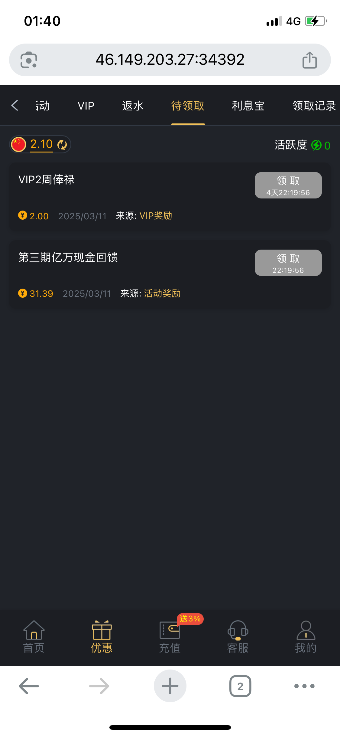 的老哥可以领 没充值过的可以登陆看看有没有神秘彩金