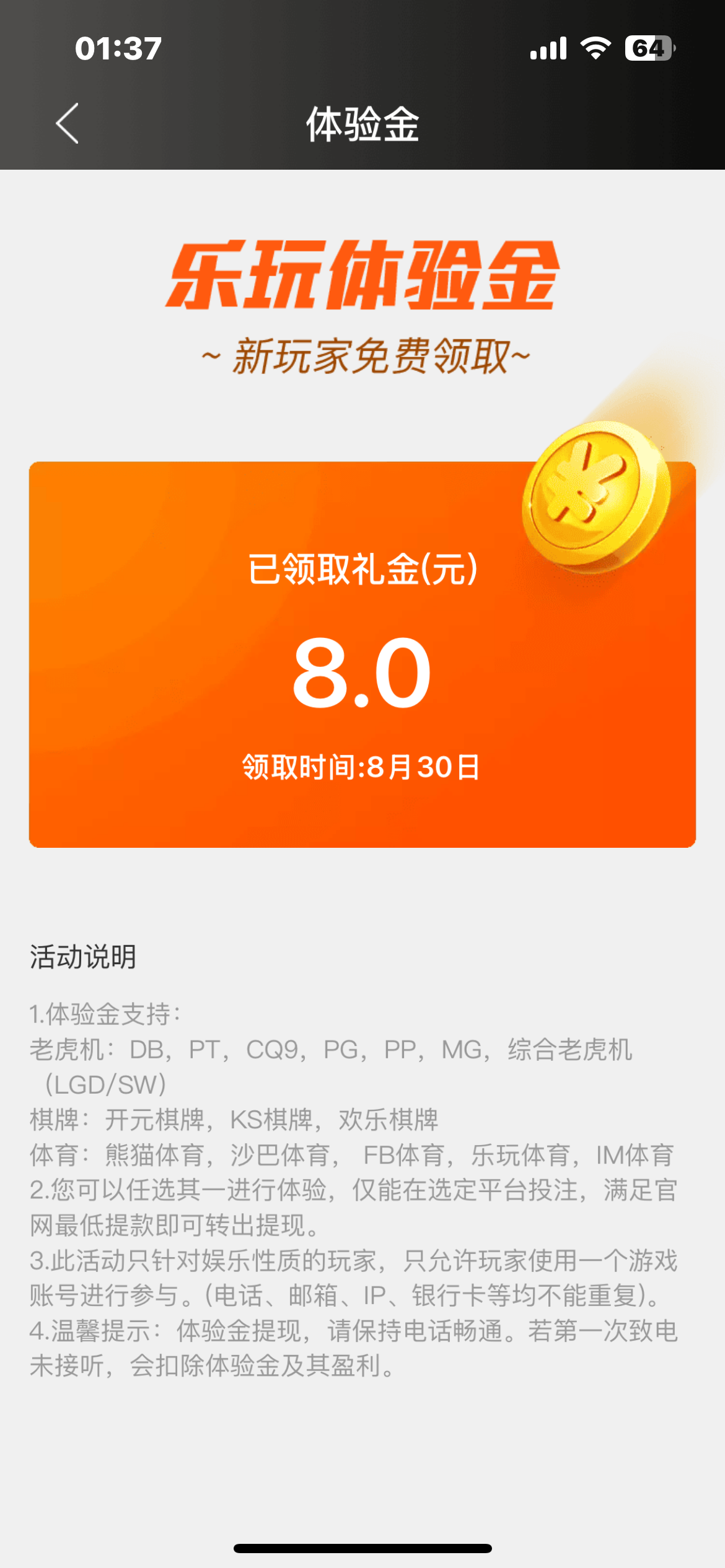 之前领过8 上号看了一下有10+88