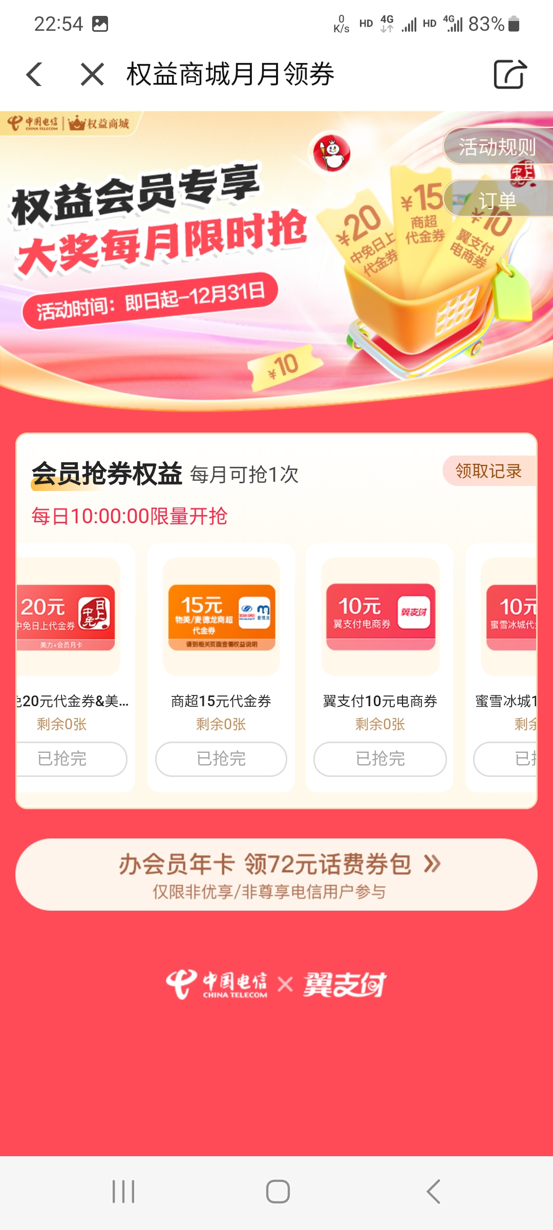 老哥们,没退订的下个月接着领。领够3个月一定记得退订