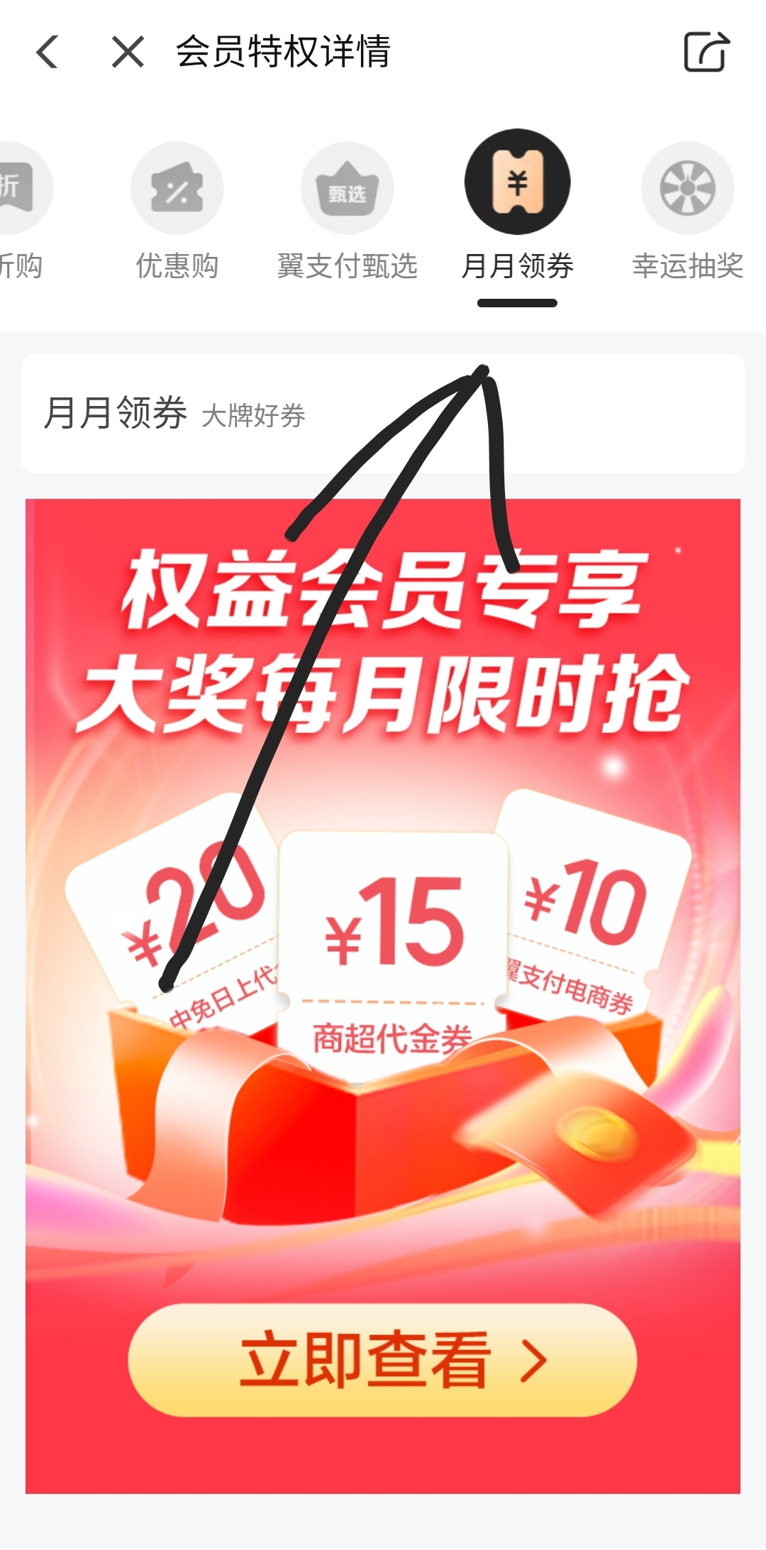 开会员的这里点进去还能0元领一次券