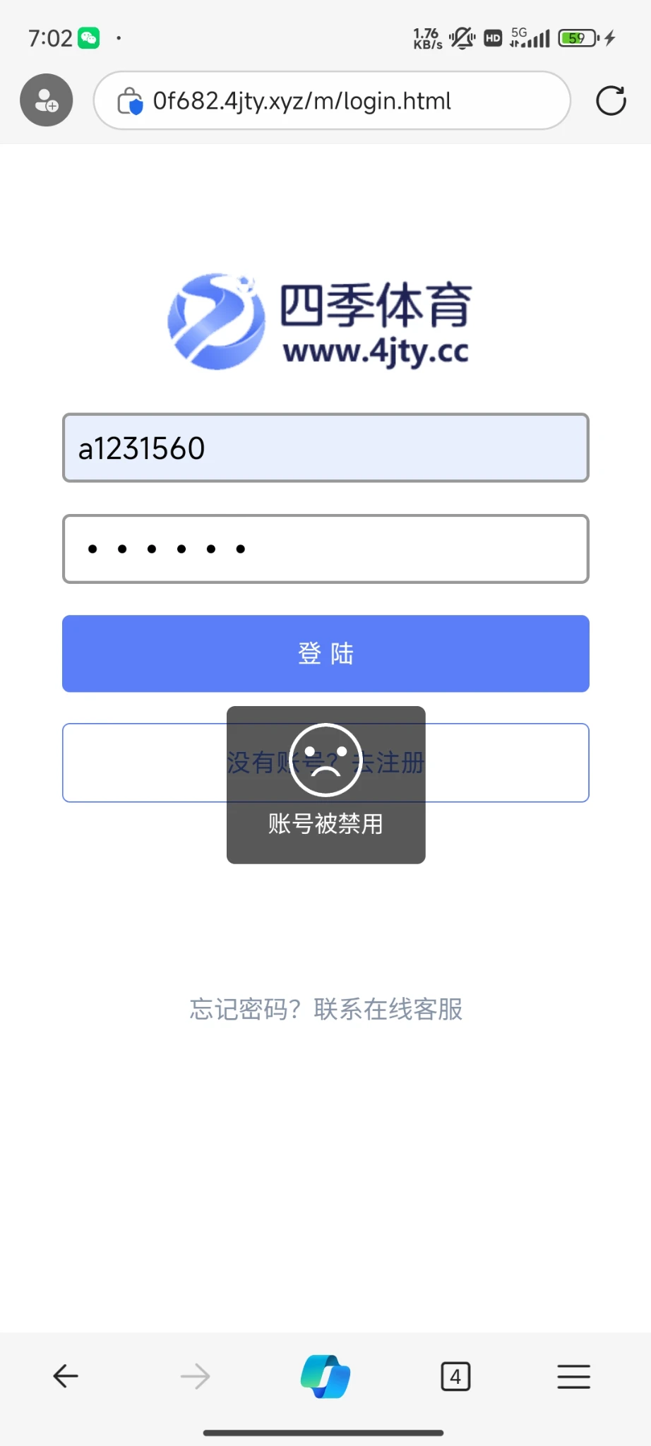 模仿的鸭脖四季体育,签到活动领了10.22,需要任意存款才能转入游戏,最低充10,搞了10块打到196提现,被冻结了。