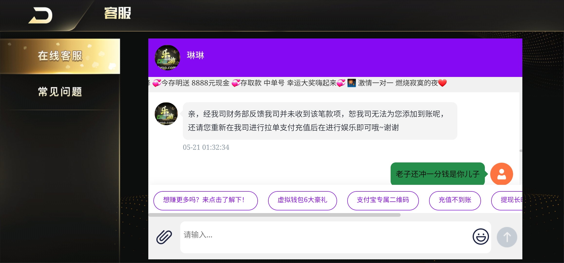 乐游黑台,第一次遇到充值黑的,之前的26乐游,现在00.TT,淘宝充值了说不到账直接黑,之前讨论就有老哥出款被黑了