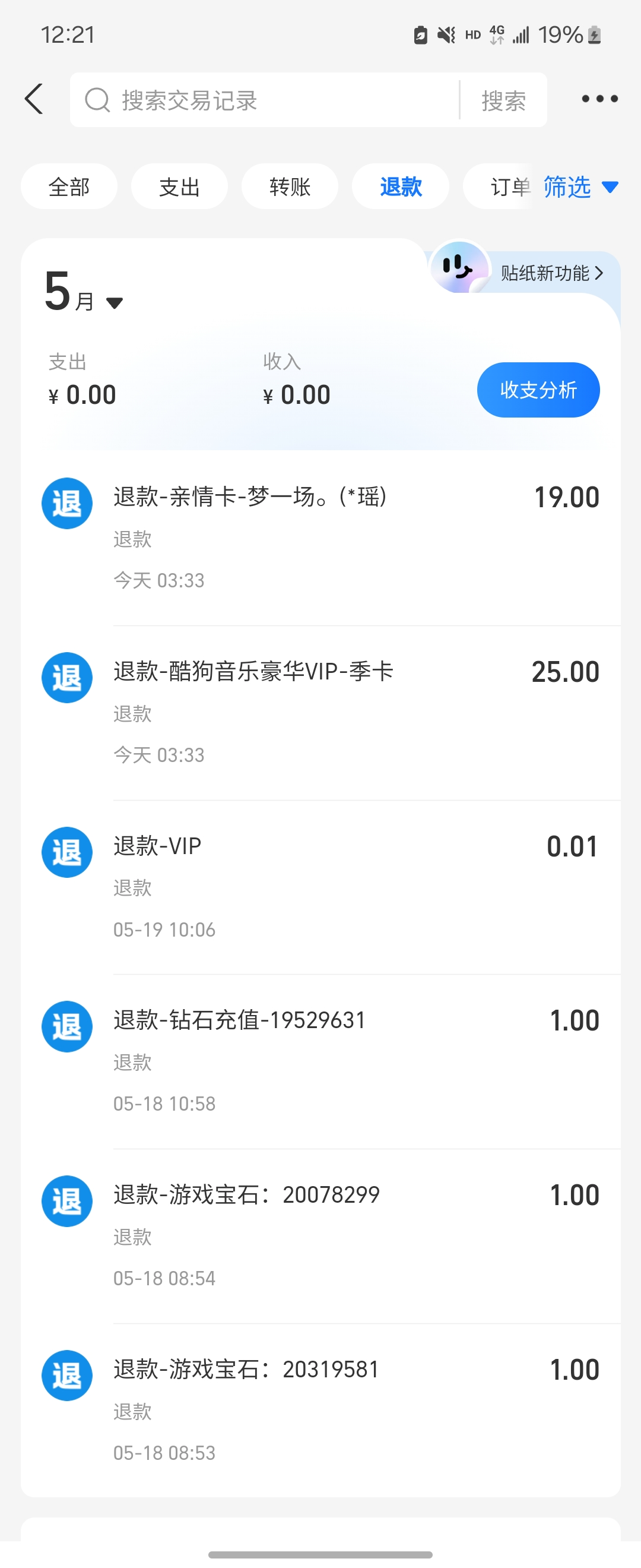 【关于支付宝退款】