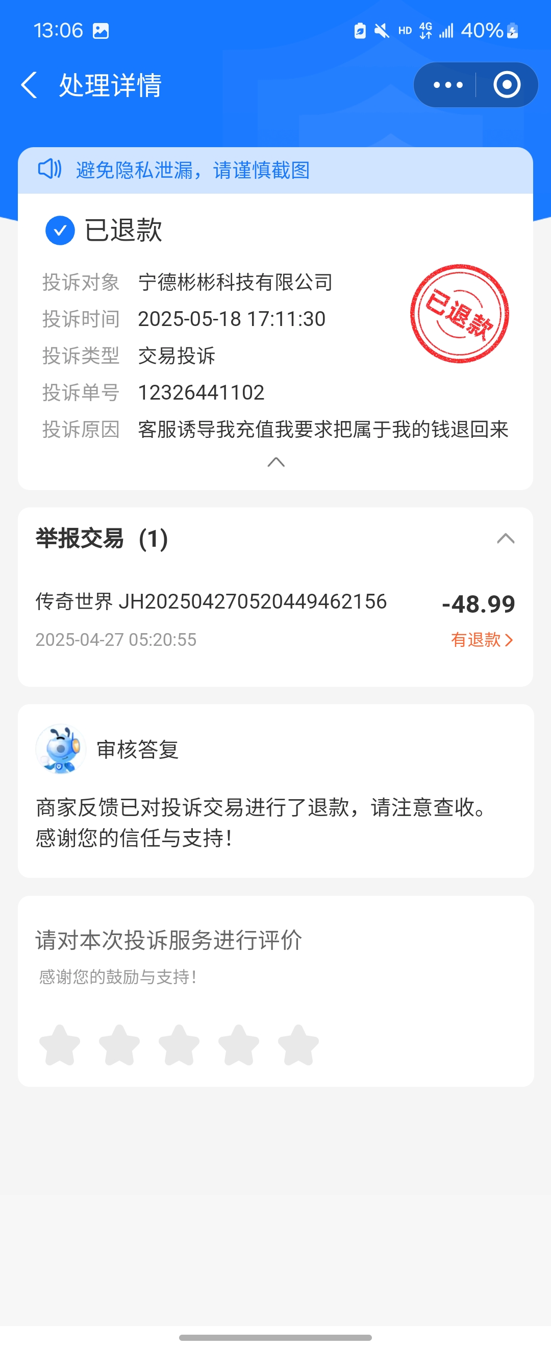 这样的订单投诉退款,百分百退,有我这样的订单可以试试