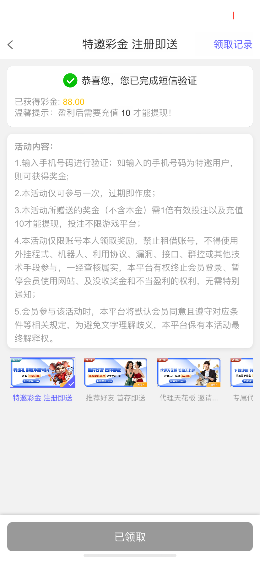 有收到特邀短信的可以领88
