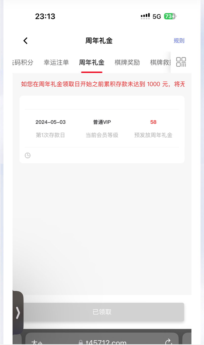 我领到了58不懂是不是要充值过才有在优惠活动周年礼金里