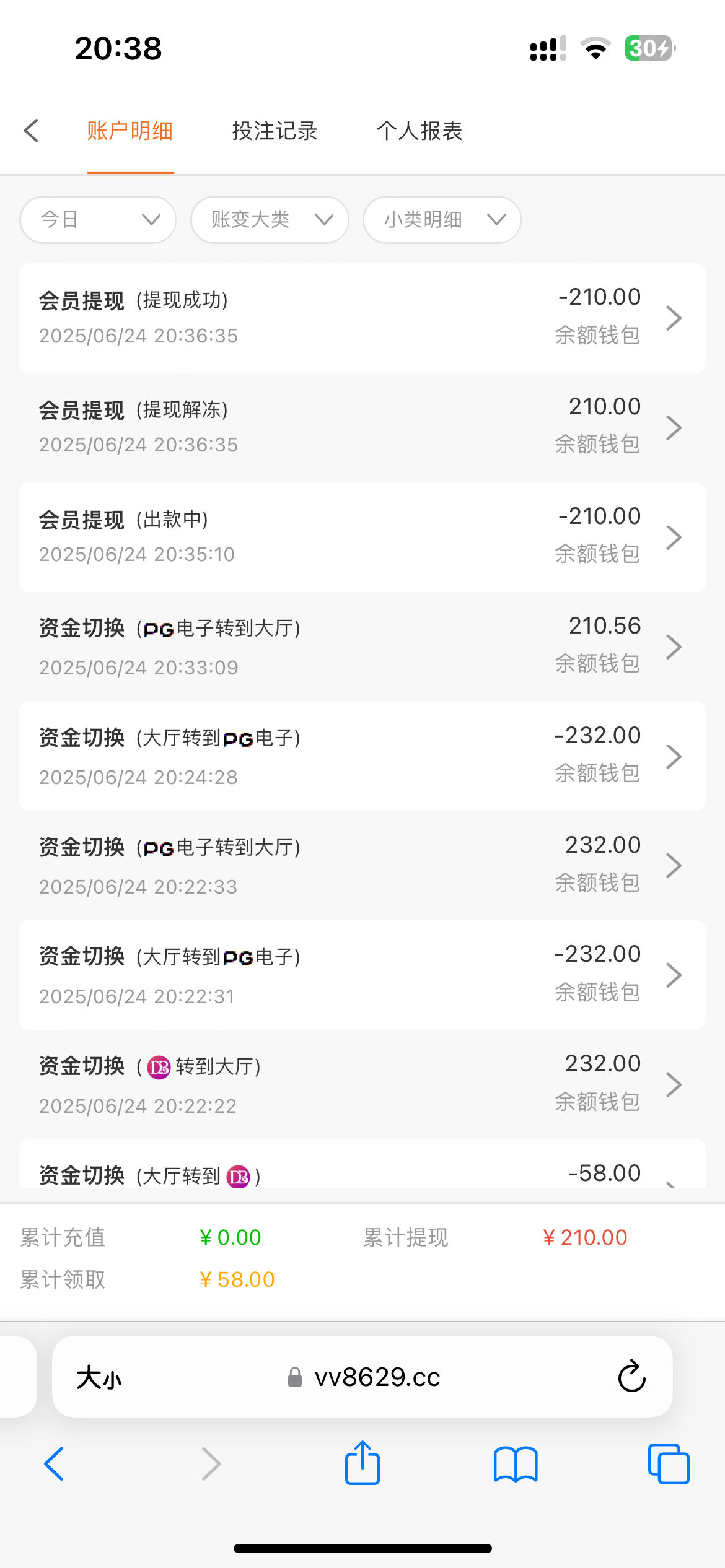 lsn630 到了58,也是电话,打到200提了,到账了,又充了50吊200提了