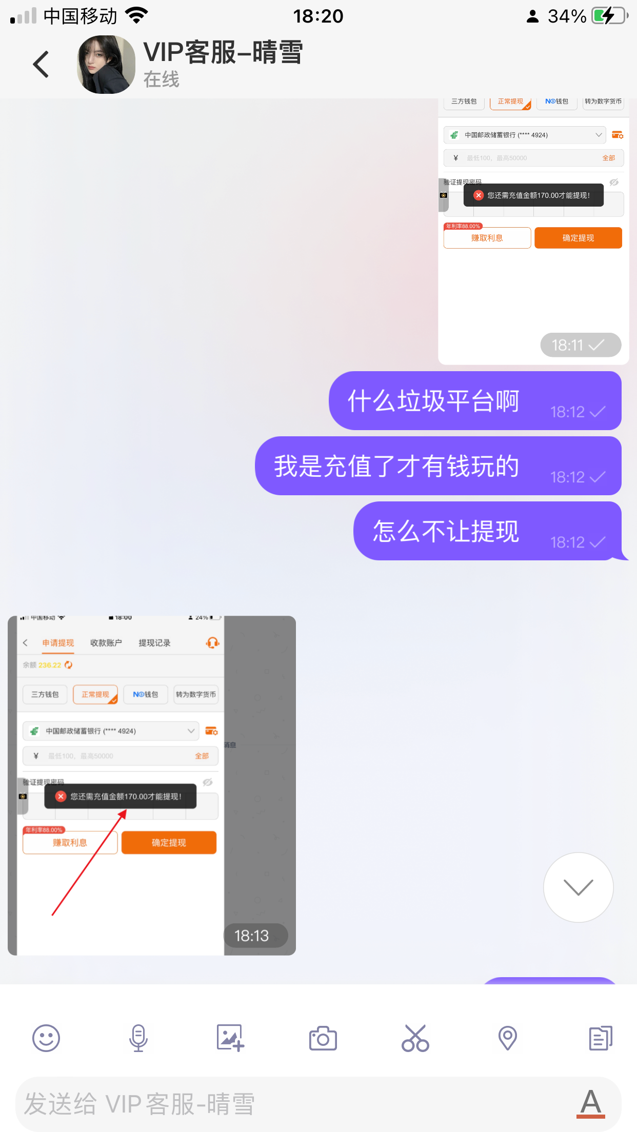 008.vip 充值赢钱不黑提!还要充值170元才给提
